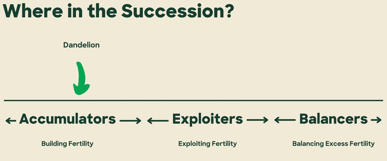 Dandelion is a mid-succession accumulator, often finding itself in lower-fertility soils.